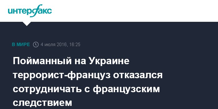 Москва. 4 июля. INTERFAX.RU - Задержанный на Украине по подозрению в подготовке терактов во Франции гражданин этой страны Грегуар М. отказывается сотрудничать с парижскими властями, пишет в понедельник газета Le Figaro.