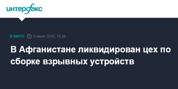Москва. 5 июля. INTERFAX.RU - Цех по сборке взрывных устройств, которые боевики экстремистского движения "Талибан" собирались использовать в терактах в дни мусульманского праздника разговения, обезврежен под Кабулом, сообщают во вторник афганские СМИ.