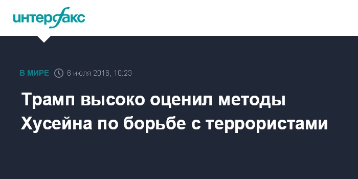 Москва. 6 июля. INTERFAX.RU - Участник президентской гонки в США Дональд Трамп в среду дал высокую оценку тому, как ныне покойный иракский лидер Саддам Хусейн вел борьбу против террористов, сообщает агентство Associated Press.