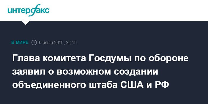 Глава комитета Госдумы по обороне заявил о возможном создании объединенного штаба США и РФ