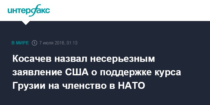 Косачев назвал несерьезным заявление США о поддержке курса Грузии на членство в НАТО