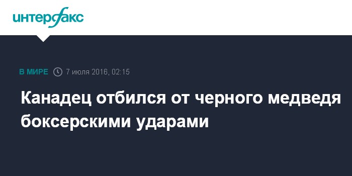 Москва. 7 июля. INTERFAX.RU - Житель Канады отпугнул 145-килограммового черного медведя с помощью навыков, которые он получил на занятиях боксом, сообщает BBC.