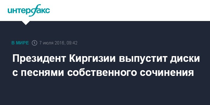 Москва. 7 июля. INTERFAX.RU - Президент Киргизии Алмазбек Атамбаев планирует выпустить к своему юбилею CD-диски с песнями на русском и киргизском языках собственного сочинения и исполнения в качестве подарка родным и близким, сообщили в четверг "Интерфаксу" в пресс-службе главы государства.