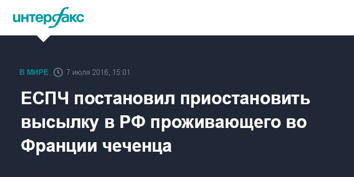 Москва. 7 июля. INTERFAX.RU - Европейский суд по правам человека (ЕСПЧ) постановил в четверг приостановить процедуру высылки в РФ находящегося на территории Франции чеченца в связи с опасениями, что на родине он может подвергнуться пыткам.