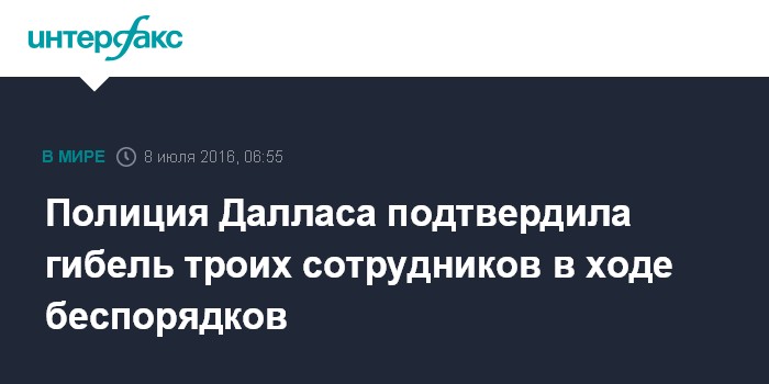 Полиция Далласа подтвердила гибель троих сотрудников в ходе беспорядков