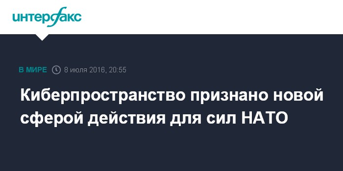 Москва. 8 июля. INTERFAX.RU - Участники саммита в Варшаве признали, что киберпространство является новой областью для оборонной политики Североатлантического альянса, заявил в пятницу на пресс-конференции генсек НАТО Йенс Столтенберг.