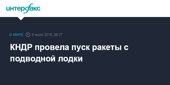 Москва. 9 июля. INTERFAX.RU - Северная Корея провела испытания баллистической ракеты, запускаемой с борта субмарины, сообщило в субботу агентстко "Ёнхап".