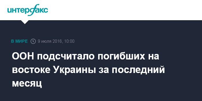 Москва. 9 июля. INTERFAX.RU - Число мирных жителей, погибших в результате конфликта на востоке Украины, в минувшем июне достигло рекордной отметки за период с августа 2015 года, говорится в заявлении Управления по координации гуманитарных вопросов (УКГВ) ООН.