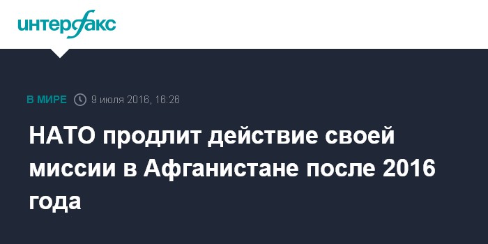 Москва. 9 июля. INTERFAX.RU - Руководство НАТО пришло к выводу о необходимости увеличить сроки действия миссии альянса "Решительная поддержка" (Resolute Support) в Афганистане, заявил в субботу на пресс-конференции генсек НАТО Йенс Столтенберг.