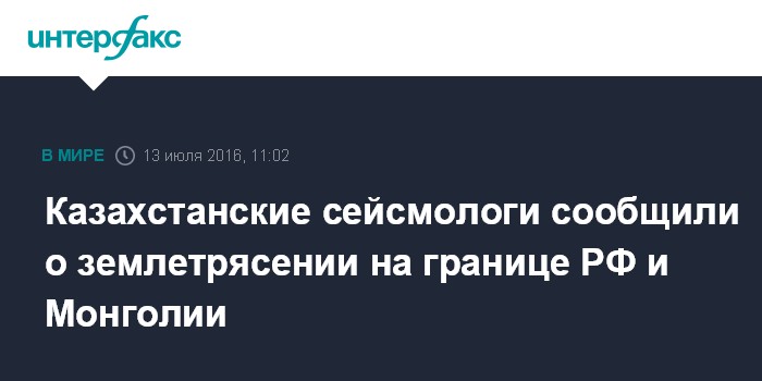 Москва. 13 июля. INTERFAX.RU - На границе России и Монголии в среду в 12:45 по времени Астаны (9:45 по Москве) произошло землетрясение магнитудой 4,3, сообщила служба сейсмологической опытно-методической экспедиции комитета по науке министерства образования Казахстана.