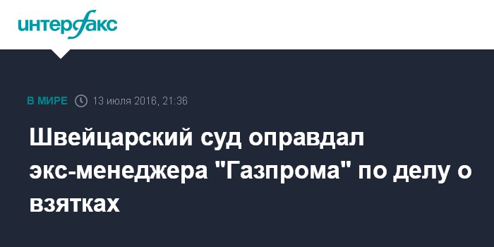 Швейцарский суд оправдал экс-менеджера "Газпрома" по делу о взятках