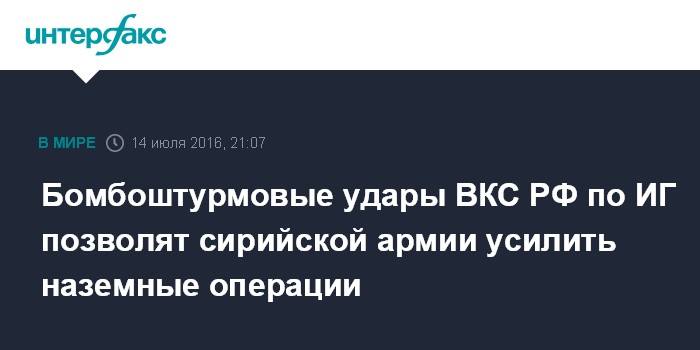 "В режиме реального времени с корректировкой были нанесены бомбоштурмовые удары, которые причинили серьезный ущерб развитию "Исламского государства" (террористическая организация, запрещенная в РФ - ИФ). Я думаю, что это очень сильно укрепит дух и позиции сирийской армии, позволит ей более интенсивно проводить наземные операции", - сказал Клинцевич "Интерфаксу" в четверг.