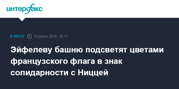 "В знак солидарности с Ниццей и ее жителями Эйфелева башня будет подсвечена в цвета флага Франции сегодня вечером", - написала Идальго в своем микроблоге в твиттере.
