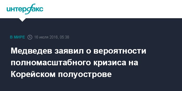 Медведев заявил о вероятности полномасштабного кризиса на Корейском полуострове