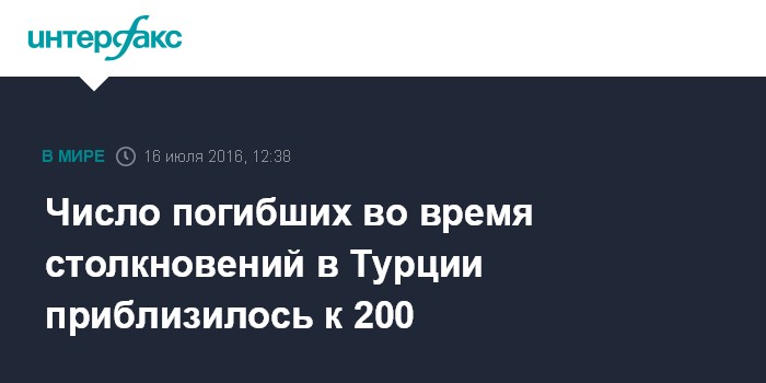 Москва. 16 июля. INTERFAX.RU - Во время попытки военного переворота в Турции погибли по меньшей мере 194 человека, сообщает The Washington Post со ссылкой на официальную Анкару.