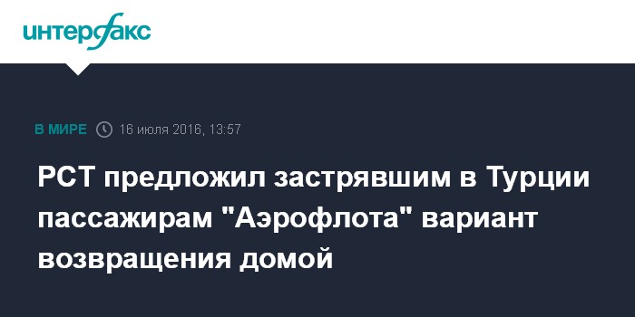 "Аэрофлот" отменил рейсы в Стамбул и Анталью 16 и 17 июля. На своем сайте авиакомпания предлагает пассажирам отмененных рейсов сдать билеты без штрафа по месту их приобретения или через контакт-центр "Аэрофлота".