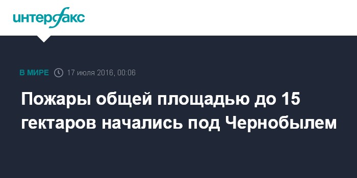 Москва. 17 июля. INTERFAX.RU - Подразделения госслужбы Украины по чрезвычайным ситуациям (ГСЧС) тушат лесную подстилку и кустарник, которые горят отдельными очагами на площади до 15 гектаров в чернобыльской зоне отчуждения близ населенного пункта Буряковка.