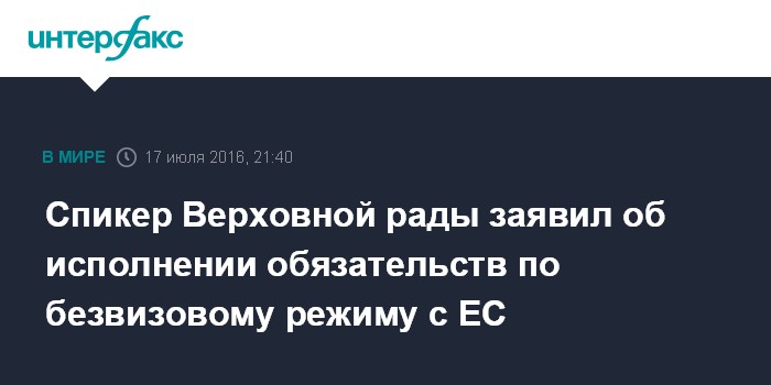 Спикер Верховной рады заявил об исполнении обязательств по безвизовому режиму с ЕС