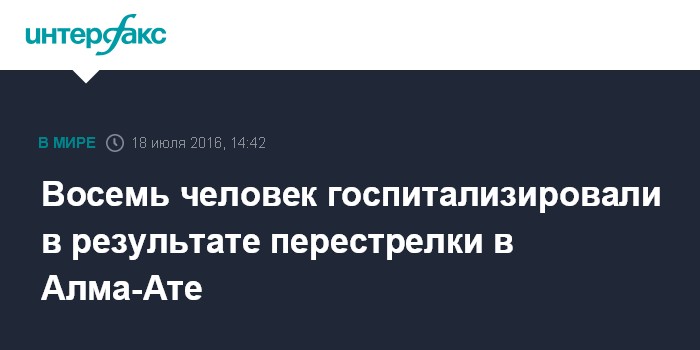 Москва. 18 июля. INTERFAX.RU - В больницах Алма-Аты находятся восемь человек, пострадавших в результате перестрелки, сообщила пресс-служба Минздрава Казахстана.