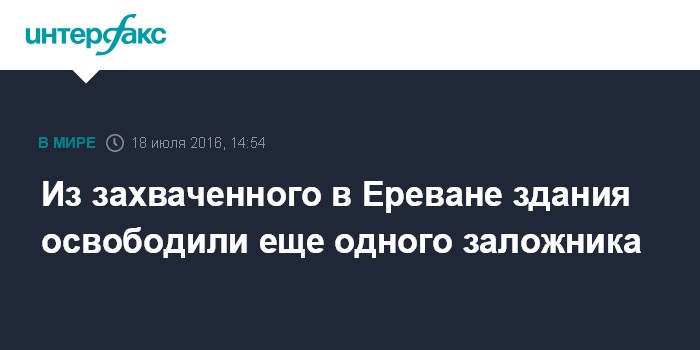 Москва. 18 июля. INTERFAX.RU - Из захваченного здания отделения полиции в Ереване освобожден еще один заложник, сообщает пресс-центр Службы национальной безопасности Армении.