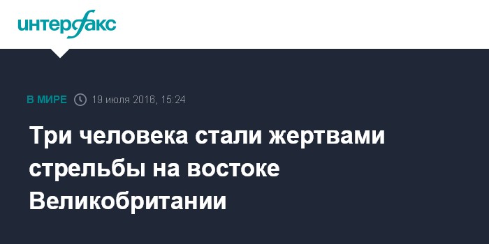Москва. 19 июля. INTERFAX.RU - Три человека убиты на востоке Великобритании в результате стрельбы, сообщили местные СМИ во вторник.