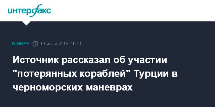 "Сейчас в Черном море действительно находятся до двух десятков кораблей и судов обеспечения ВМС Турции. До десяти вымпелов принимали участие в завершившихся 17 июля у берегов Румынии и Болгарии международных учениях Breeze-2016. Еще несколько турецких кораблей задействованы в начавшихся накануне учениях ВМС Украины и стран НАТО Sea Breeze-2016", - сказал собеседник агентства. "Возможно, - предположил он, - отсюда и возникла указанная в СМИ цифра".