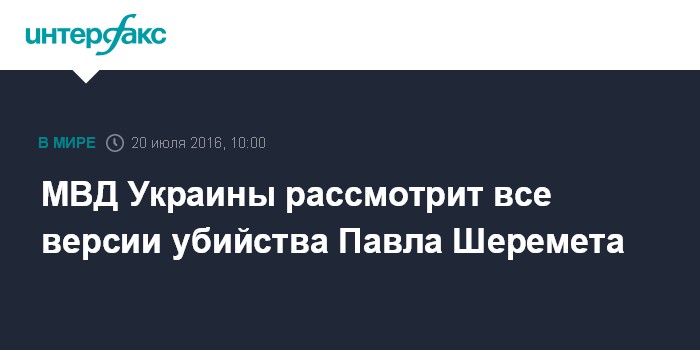 Москва. 20 июля. INTERFAX.RU - Полиция будет рассматривать все версии гибели журналиста Павла Шеремета, заявил директор департамента коммуникаций МВД Украины Артем Шевченко.