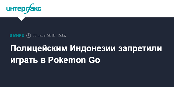 Москва. 20 июля. INTERFAX.RU - Сотрудникам индонезийской полиции запретили играть в популярную мобильную игру Pokemon Go, сообщают в среду западные СМИ. Запрет распространяется на всех полицейских, находящихся при исполнении.