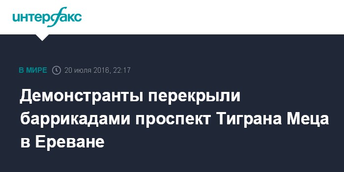 Москва. 20 июля. INTERFAX.RU - Демонстранты в Ереване в среду вечером перекрыли проспект Тиграна Меца, ведущий в сторону центра города, сообщил корреспондент "Интерфакса".