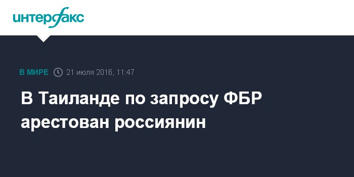 Москва. 21 июля. INTERFAX.RU - Полиция Таиланда арестовала гражданина РФ по запросу ФБР, сообщили в посольстве России в Бангкоке.