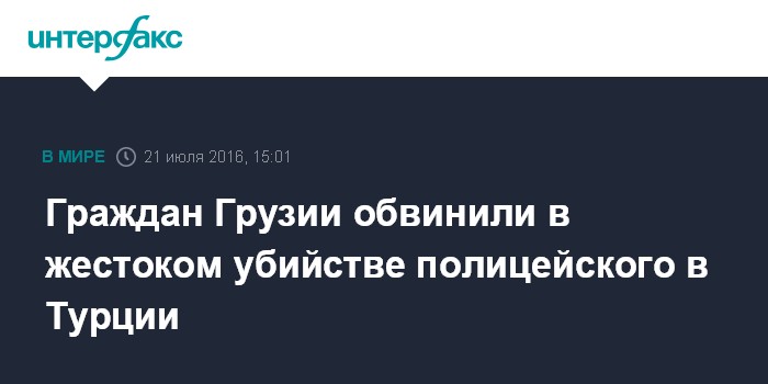 Москва. 21 июля. INTERFAX.RU - По обвинению в убийстве полицейского в Турции задержаны пять граждан Грузии, сообщают в четверг грузинские СМИ.