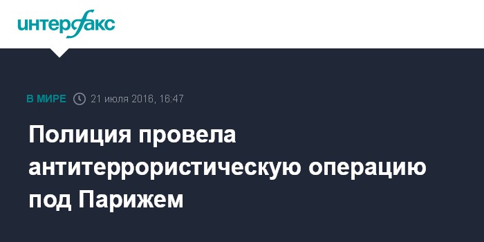 Москва. 21 июля. INTERFAX.RU - Французская полиция провела антитеррористическую операцию в предместье Аржантей на северо-западе Парижа, рассказали журналистам в министерстве юстиции страны.