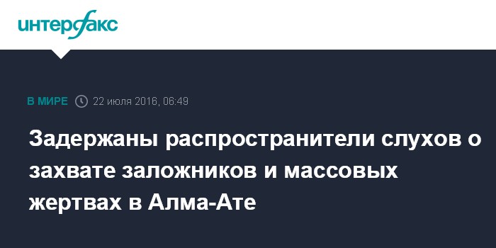 Москва. 22 июля. INTERFAX.RU - В Алма-Ате задержаны двое молодых людей, которые через социальные сети активно распространяли недостоверные сведения о событиях во время перестрелки 18 июля, сообщила пресс-служба городского департамента внутренних дел (ДВД).