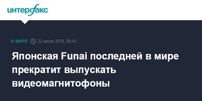 Москва. 22 июля. INTERFAX.RU - Японская компания Funai Electric, последний оставшийся производитель видеомагнитофонов для кассет формата VHS, прекратит их производство в июле 2016 года.