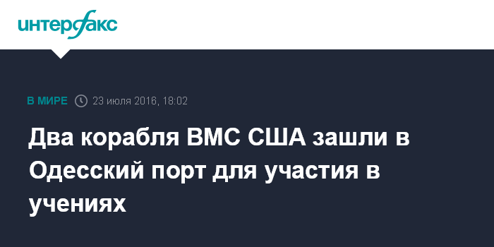 Москва. 23 июля. INTERFAX.RU -Два корабля Военно-морских Сил США - эсминец USS Ross (DDG71) и большой десантный корабль USS Whidbey Island (LSD-41) - зашли в Одесский порт в субботу, передал корреспондент агентства "Интерфакс-Украина".