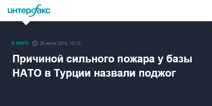Москва. 25 июля. INTERFAX.RU - Пожар, разгоревшийся близ военной базы НАТО в провинции Измир на западе Турции, скорее всего, является актом саботажа, сообщает в понедельник турецкий телеканал CNN Turk.