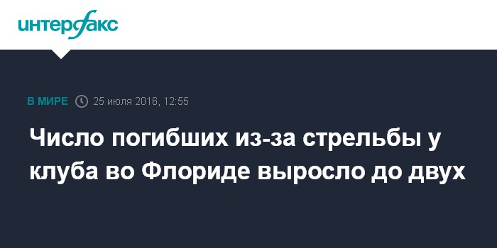 Москва. 25 июля. INTERFAX.RU - Еще один человек скончался в результате стрельбы у ночного клуба Club Blu во Флориде, где отдыхали подростки, сообщает в понедельник CBS News.