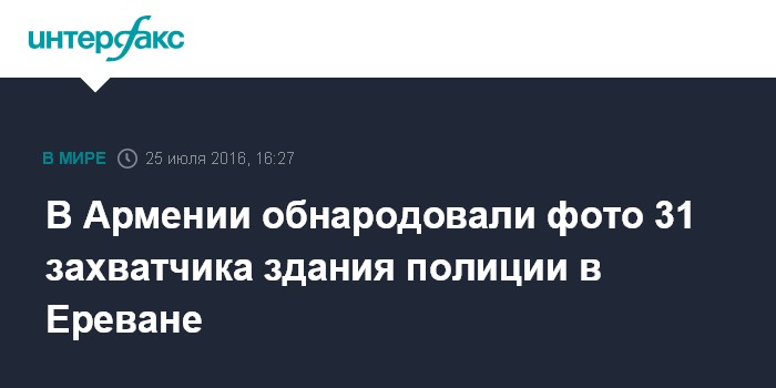 В Армении обнародовали фото 31 захватчика здания полиции в Ереване