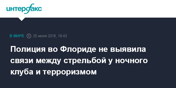 Москва. 25 июля. INTERFAX.RU - Стрельба у ночного клуба в американском городе Форт Майерс (штат Флорида) не является терактом, заявили в понедельник в полиции города.