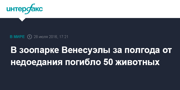 Москва. 28 июля. INTERFAX.RU - В зоопарке Курикуао в Венесуэле скончались от хронического недоедания за последние полгода 50 животных, сообщает The Evening Standard.