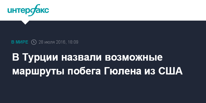 Москва. 28 июля. INTERFAX.RU - Министр юстиции Турции Бекир Боздаг заявил в интервью телеканалу Habertürk, что проживающий в США проповедник Фетхуллах Гюлен мог покинуть страну и направиться в Австралию, Мексику, Канаду, ЮАР или Египет.
