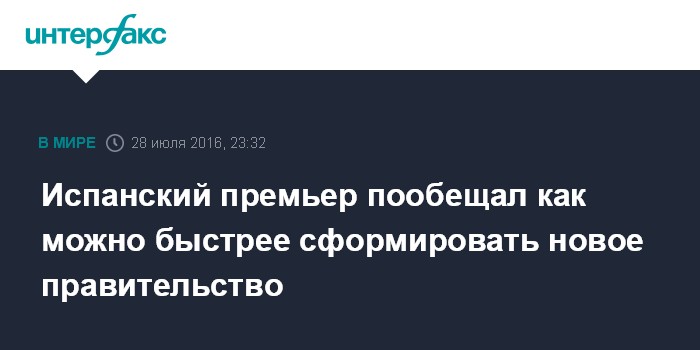 Москва. 28 июля. INTERFAX.RU - Действующий премьер Испании Мариано Рахой заявил в четверг, что постарается как можно быстрее сформировать новое правительство страны, сообщает агентство ЭФЭ.