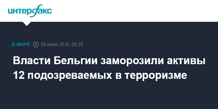Москва. 29 июля. INTERFAX.RU - Бельгия впервые заморозила банковские активы предполагаемых террористов административным решением, без участия судьи, сообщила в пятницу газета "Эко".