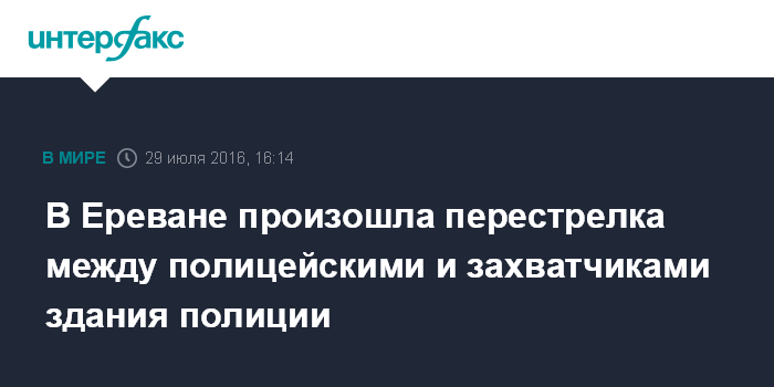 Утром 17 июля группа вооруженных лиц захватила здание полиции в Ереване. При этом они убили полицейского и четырех человек ранили. Радикалы потребовали освобождения координатора армянской оппозиционной гражданской инициативы "Учредительный парламент" Жирайра Сефиляна, находящегося под арестом по обвинению в незаконном приобретении и хранении оружия. Члены вооруженной группы также требуют отставки президента и правительства, формирования правительства доверия.
