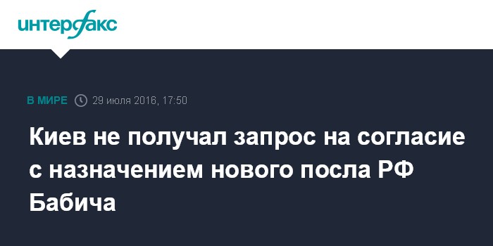 Москва. 29 июля. INTERFAX.RU - В министерстве иностранных дел Украины не получали запрос на агреман новому послу РФ на Украине Михаилу Бабичу, сообщил директор департамента политики и коммуникации МИД Украины Алексей Макеев.