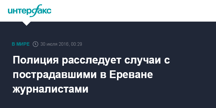 Москва. 30 июля. INTERFAX.RU - Полиция Армении обещает расследовать все инциденты при разгоне демонстрантов, при которых пострадали журналисты.
