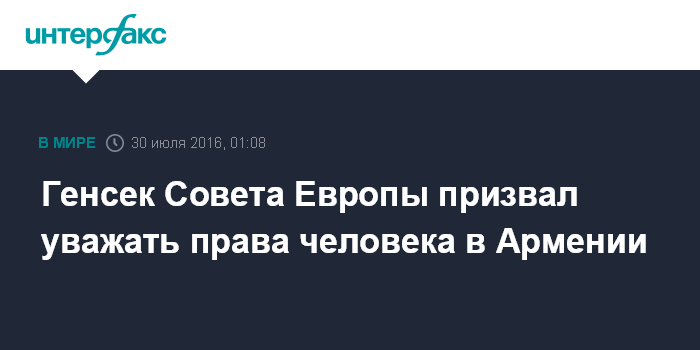 Москва. 30 июля. INTERFAX.RU - Генеральный секретарь Совета Европы Тъорборн Ягланд выразил обеспокоенность в связи с событиями в Ереване.