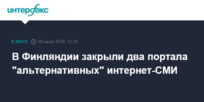 Москва. 30 июля. INTERFAX.RU - В Финляндии по требованию полиции в пятницу закрыли два портала "альтернативных" СМИ: MV-lehti и Uber Uutiset.