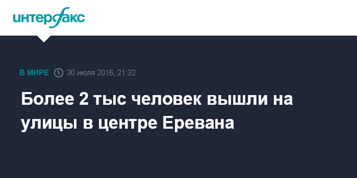 Москва. 30 июля. INTERFAX.RU - Порядка двух тысяч человек вышли на шествие по центральным улицам Еревана в знак поддержки вооруженной группировки, захватившей полицейский полк, сообщает корреспондент "Интерфакса".