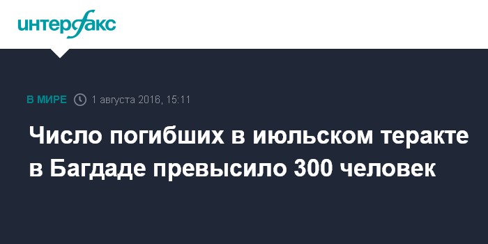 Число погибших в июльском теракте в Багдаде превысило 300 человек